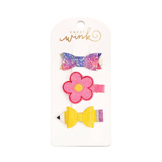 Sweet Wink - Retro Pencil Clip Set - Back To School Hair Clips - Kids