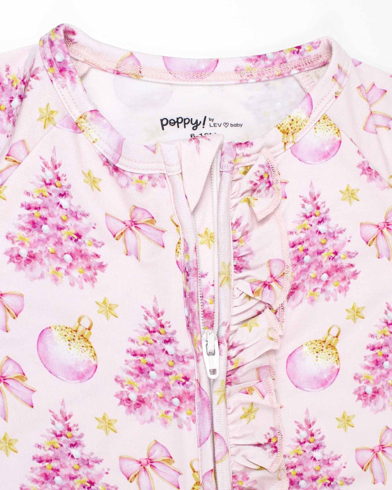 Dress your little one in holiday magic with this adorable Lev Baby Kristina Ruffled Convertible Romper! Featuring charming pink holiday trees and delicate ruffled details, this versatile piece transitions seamlessly from festive celebrations to everyday adventures. The convertible design grows with your baby, offering extended wear and value. Perfect for capturing those precious holiday moments in style!