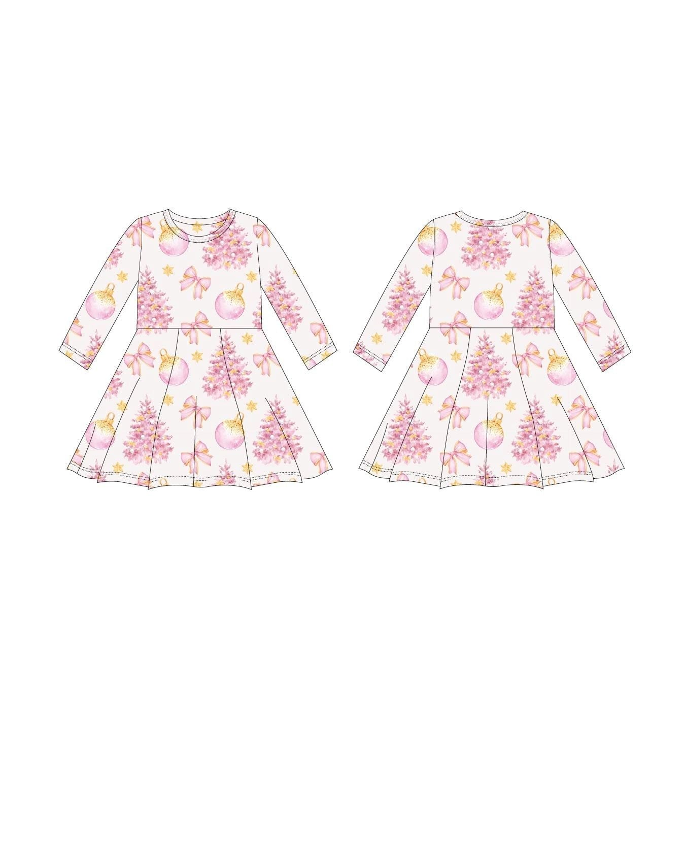 Get ready for festive fun in the Lev Baby Kristina Twirl Dress! This cheerful frock showcases a delightful pink holiday trees design that captures the magic of the season. The twirly silhouette is made for dancing, spinning, and celebrating—whether she's at a holiday party or just spreading seasonal cheer around the house. Soft, comfortable, and bursting with holiday spirit, this dress lets your little one celebrate in style. Perfect for creating those picture-perfect moments!