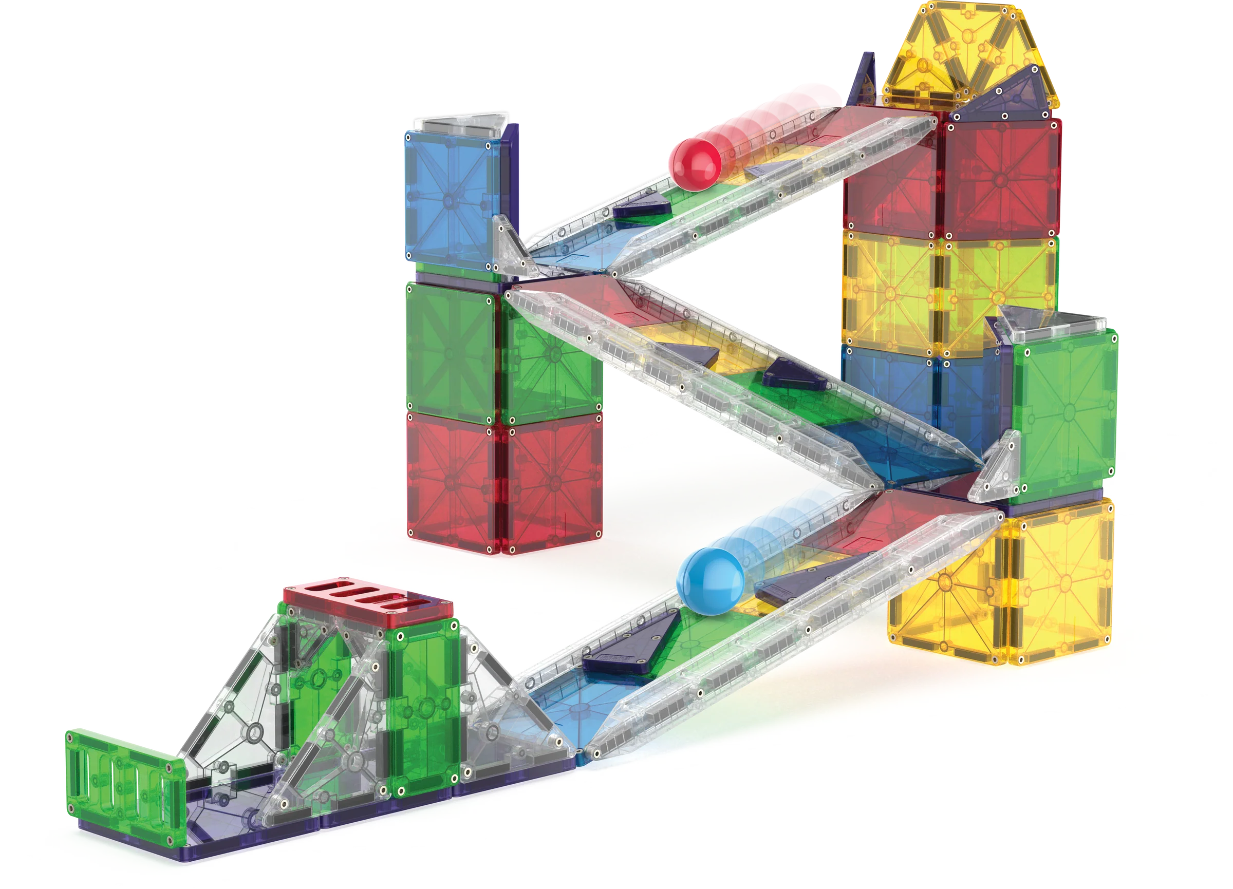Inspired by a MAGNA-TILES fan and problem-solving dad who wanted a better way to play with his kids, this set combines hands-on fun with frustration-free design. Small Gates and Fences keep builds sturdy, while the included balls add high-speed action. Perfect for exploring speed, momentum, and STEM learning, Rail Racers empower kids to create with confidence. And when playtime ends, everything stores neatly, keeping the fun ready to roll for next time!