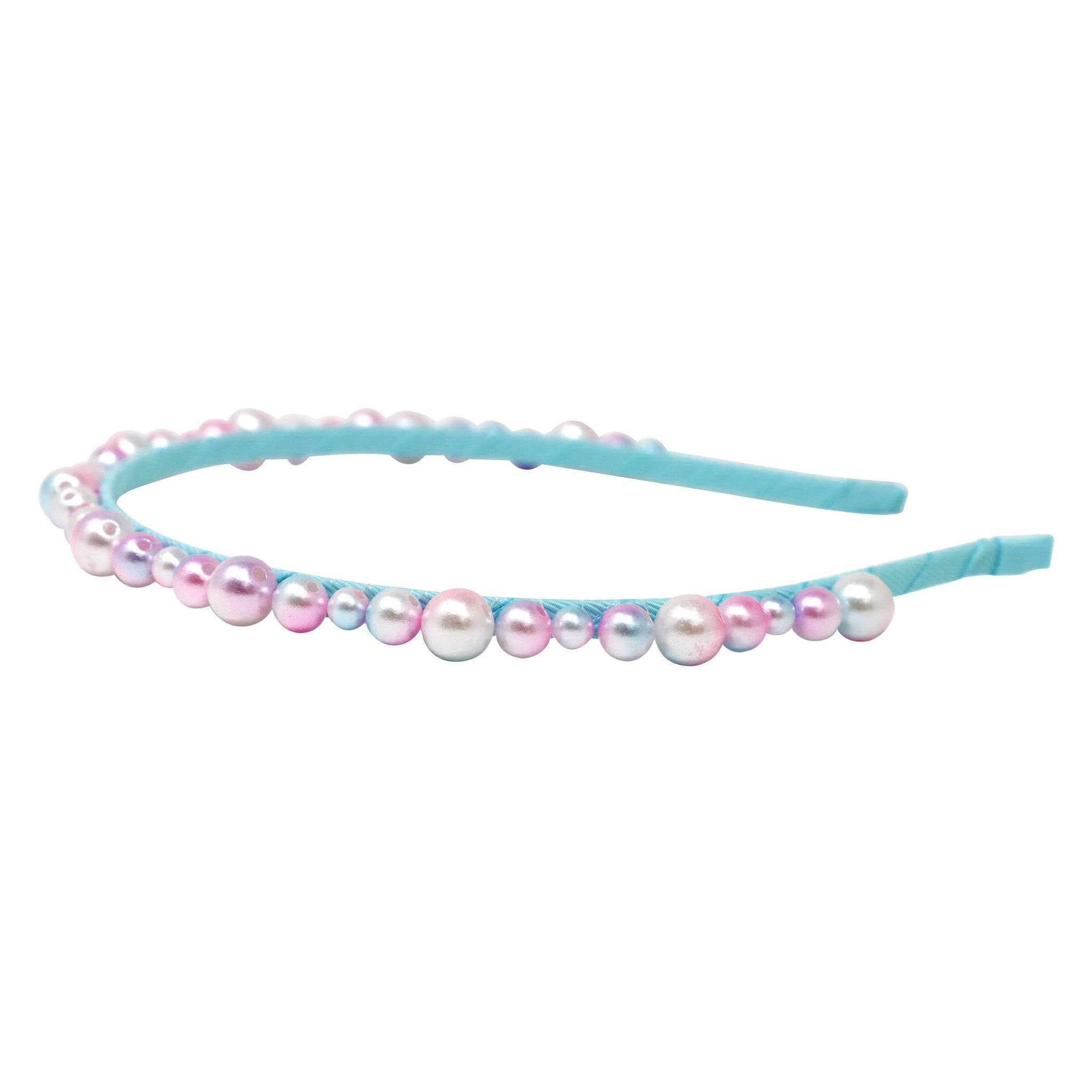 Pink Poppy's Shimmering Mermaid Pearl Headband Perfect for special occasions or every day. Thisthin alice style headband is adorned with pearls. Slip on style