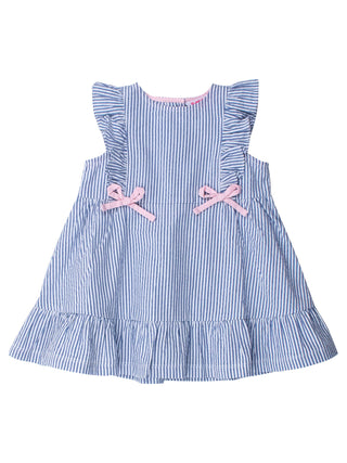 RuffleButts + RuggedButts - Girls Blue Seersucker Pinafore Bow Dress