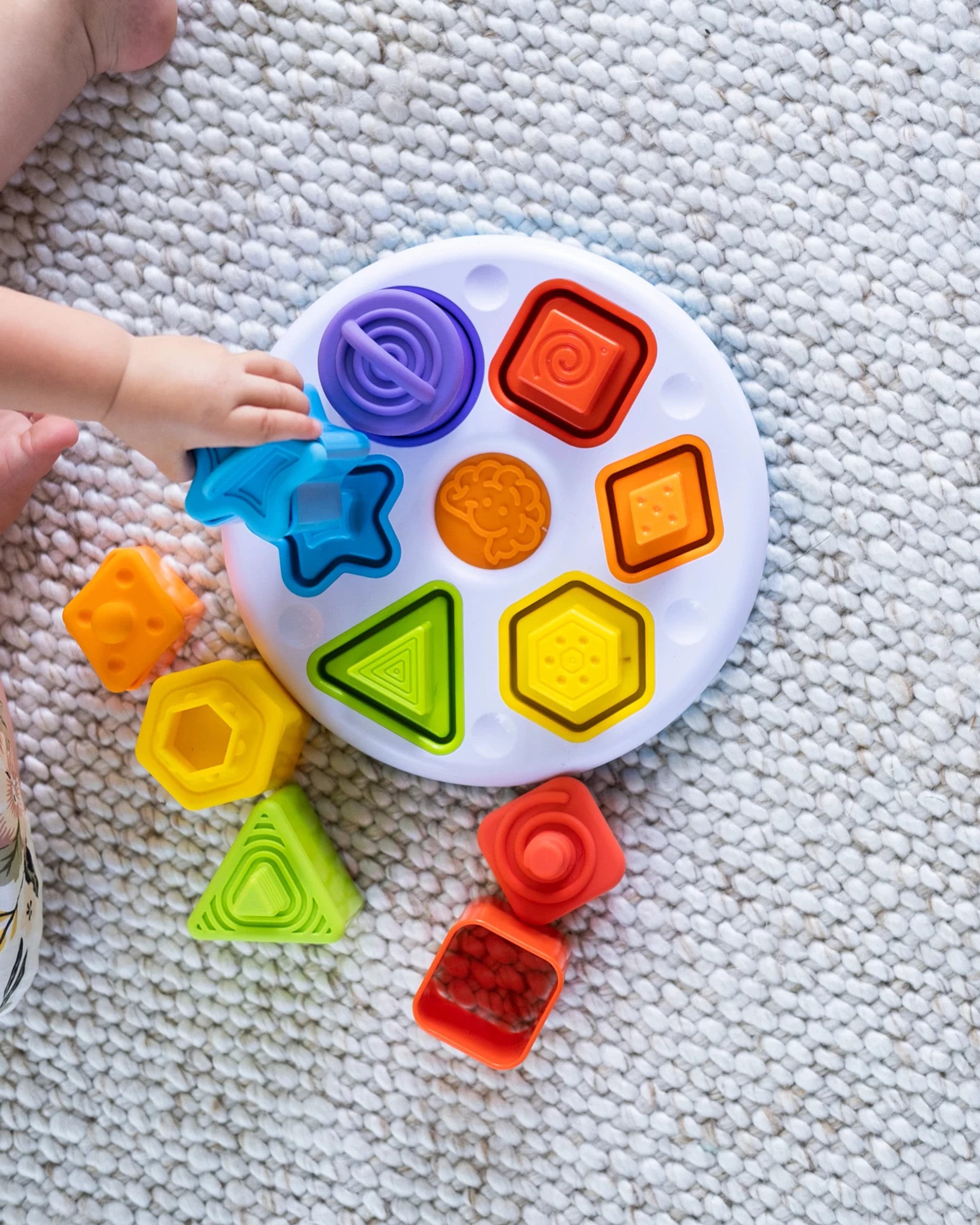 • Encourages fine motor skills, sensory learning, spatial reasoning, shape-matching, exploration