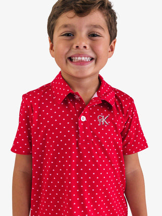 RuffleButts + RuggedButts - Boys Red Heart Polka Dot Knit Short Sleeve Performance Polo