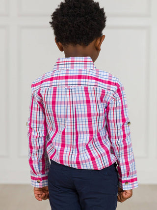 RuffleButts + RuggedButts - Boys Adley Plaid Long Sleeve Button Down Shirt