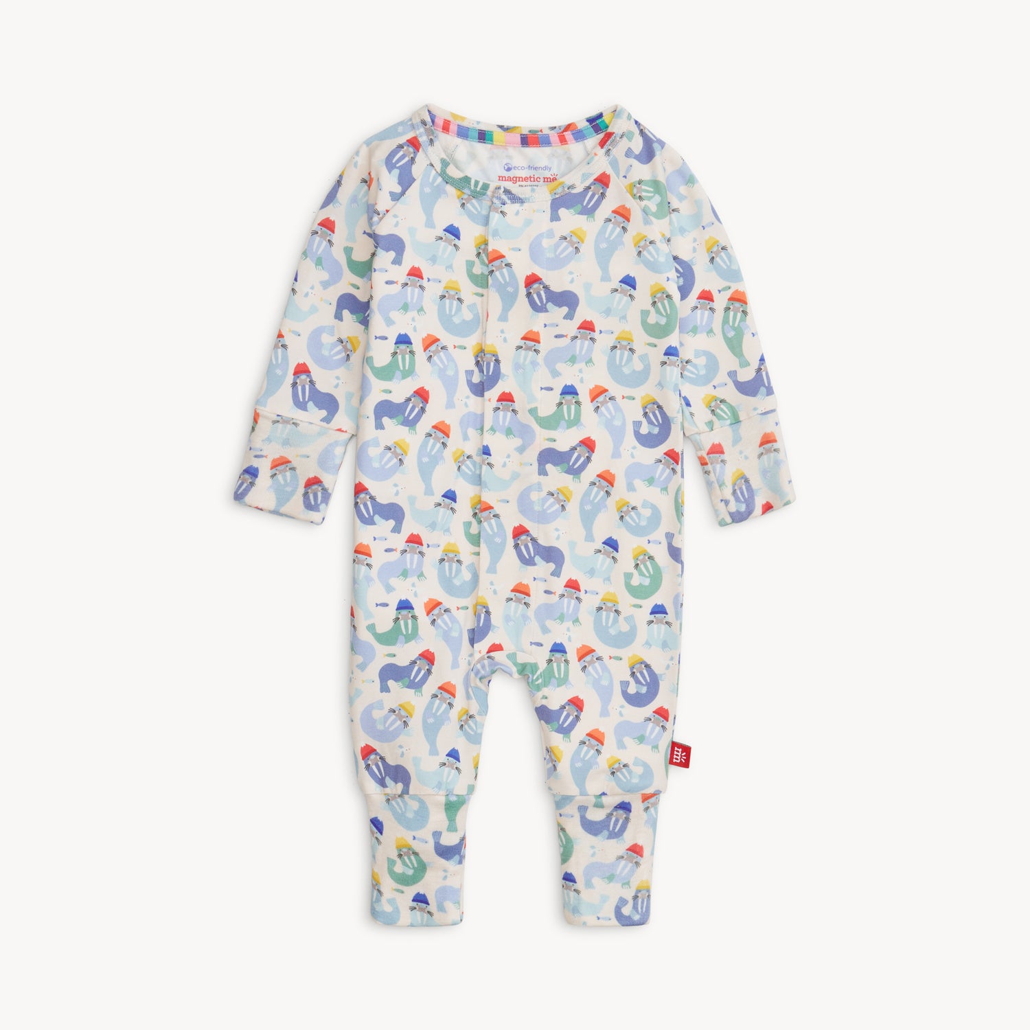 • magnetic closures: magnets line the seam from the neck to the crotch adjustable leg cuffs: foldable leg cuffs on all sizes allow an additional 3.5” of length.