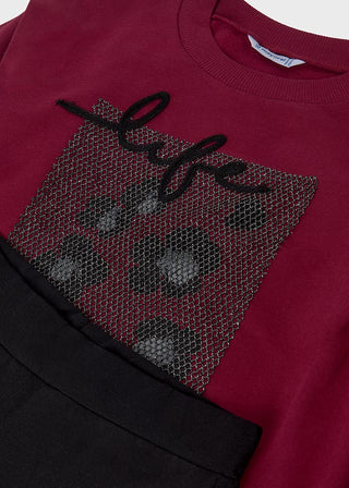 Mayoral Maroon Sweater and Black Flared Leggings Set