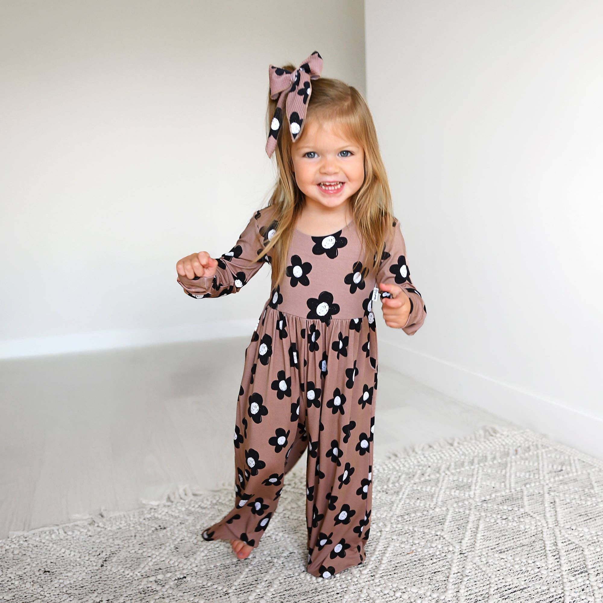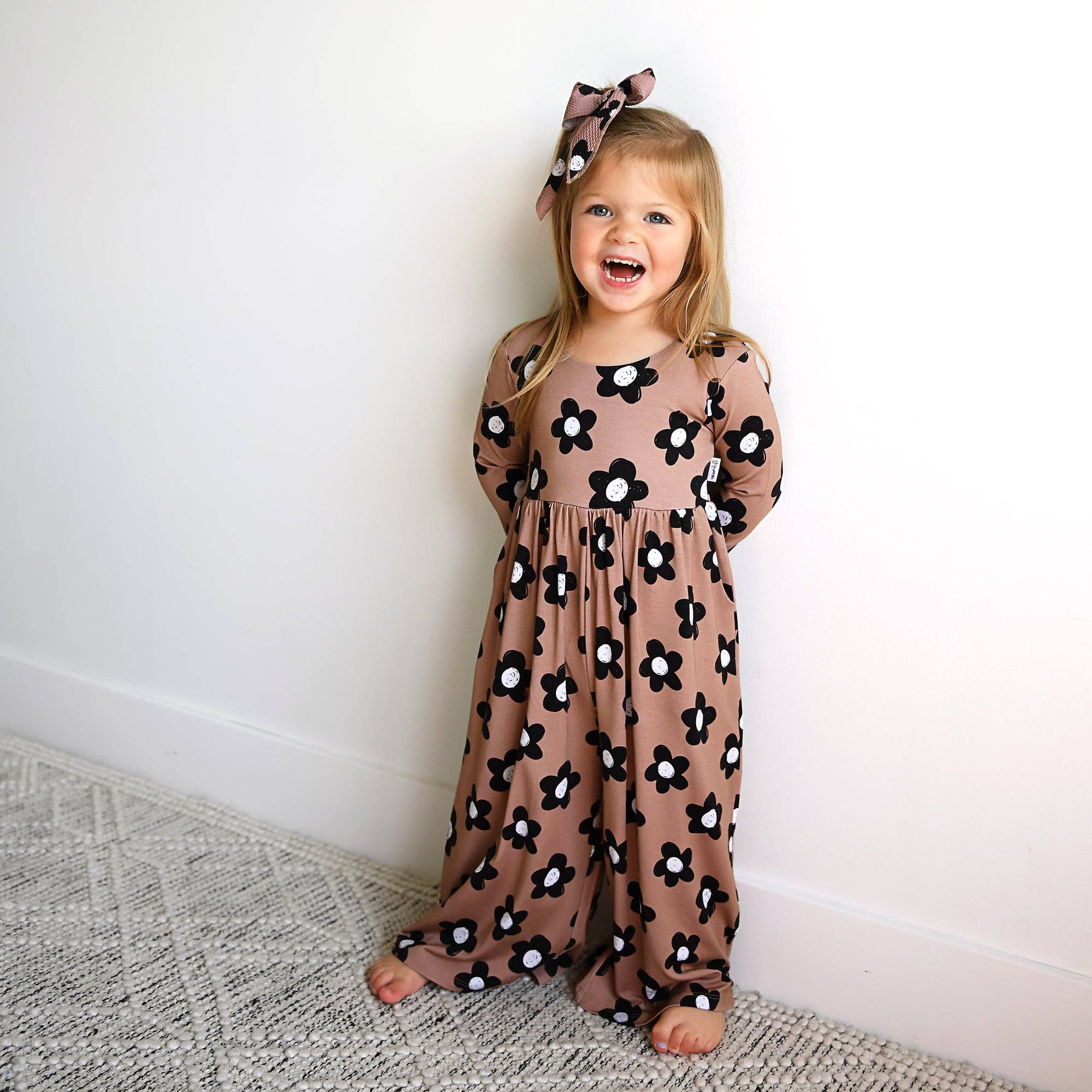 Your little one will love the easy comfort of this wide leg romper. Made from luxuriously soft and breathable bamboo viscose, it has the perfect amount of stretch for play and everyday wear. The wide leg fit gives it a relaxed, stylish look while still keeping it practical and comfy. This romper does not have snaps on the legs—slipping it on and off is quicker and easier than dealing with snaps. We promise! Designed to run true to size with a slim, fitted top and roomy legs. If you’d like extra room to grow, we recommend sizing up. Care instructions: Wash on cold and lay flat or hang to dry. Care details are screen-printed inside the neckline for easy reference. Fabric: 95% Viscose from Bamboo, 5% Spandex