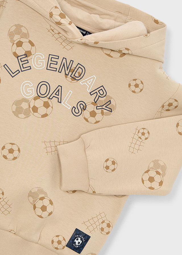 He'll score big in the style game with this cool Mayoral Pullover featuring a 'Legendary Goals' theme! This comfortable pullover combines quality construction with sporty style, perfect for active boys who love to play.
