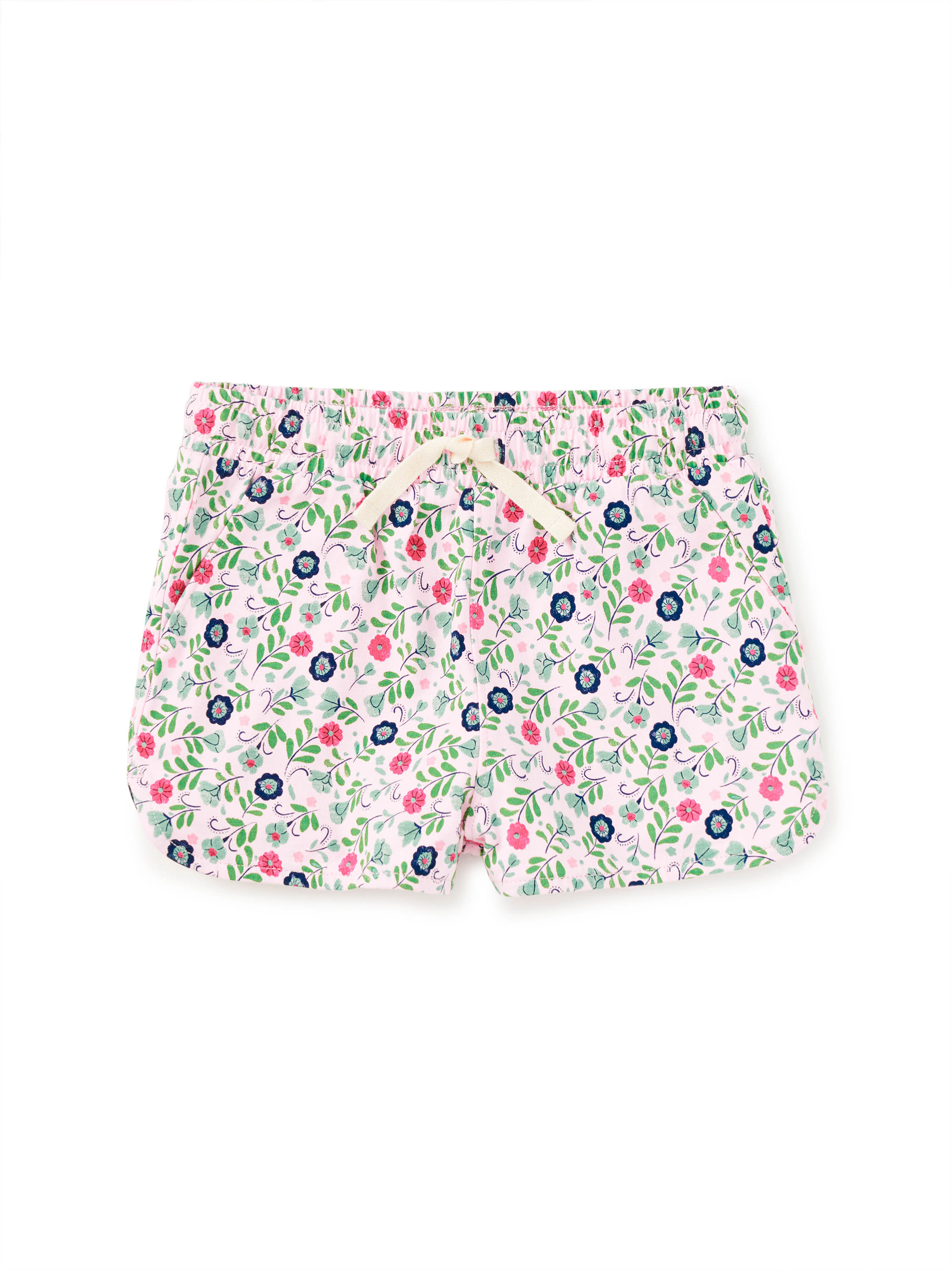 Tea Tie Waist Shorts Azuejos Florales Brighten up playtime with these charming tie waist shorts featuring a vibrant azulejos florales pattern. The adjustable tie waist ensures a perfect fit as your little one grows, while the relaxed silhouette keeps them comfy all day long. Soft, breathable fabric makes these shorts ideal for warm weather adventures, from backyard play to family outings. A playful pop of color that pairs perfectly with any top in their wardrobe.