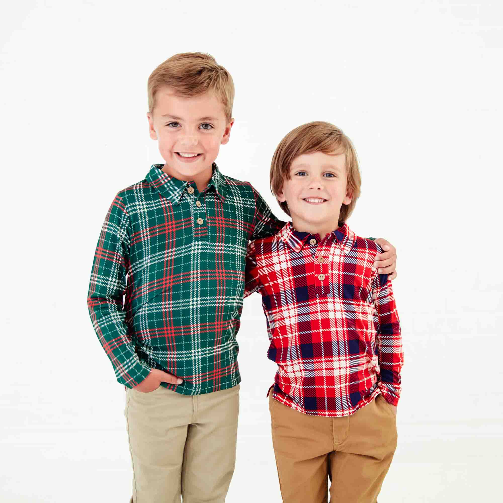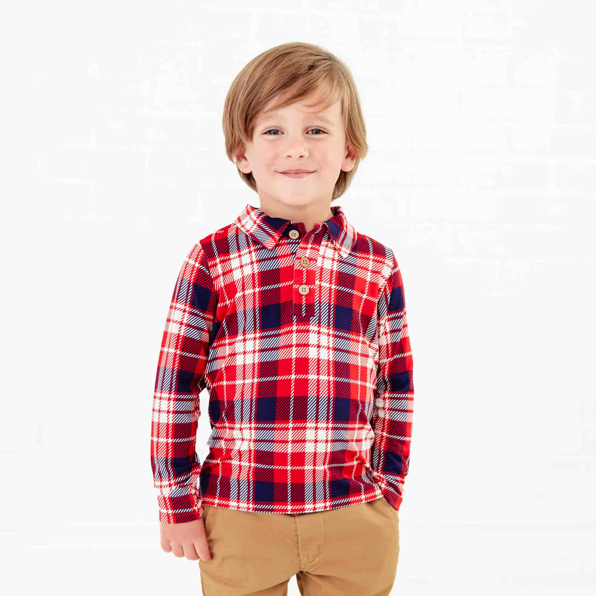 Candy cane wishes and mistletoe kisses! Holiday plaids are a must have!! Our classic Long Sleeve Polo Shirts are the perfect addition to any little guy's Holiday wardrobe! Featuring the same bamboo fabric you love, these shirts go great with jeans or khaki's, and are sure to keep your little one stylish while they are still cool and comfortable! * 95% Viscose from Bamboo, 5% Spandex * Our Fabric is not treated with harsh chemicals * Tagless! Our raglan shirts are free from anything itchy that might irritate your little one's skin. * Stretchy, Stylish and Comfortable! * Not Intended For Sleepwear What is it about Dreamiere Bamboo? Our bamboo fabric stays about 3 degrees cooler than cotton on average. It’s great for kids with eczema. It's great for hot sleepers and sensitive skin. In warm, humid weather, our bamboo won't stick to your child’s skin. It's sure to keep your little one drier, cooler and more comfortable year-round!