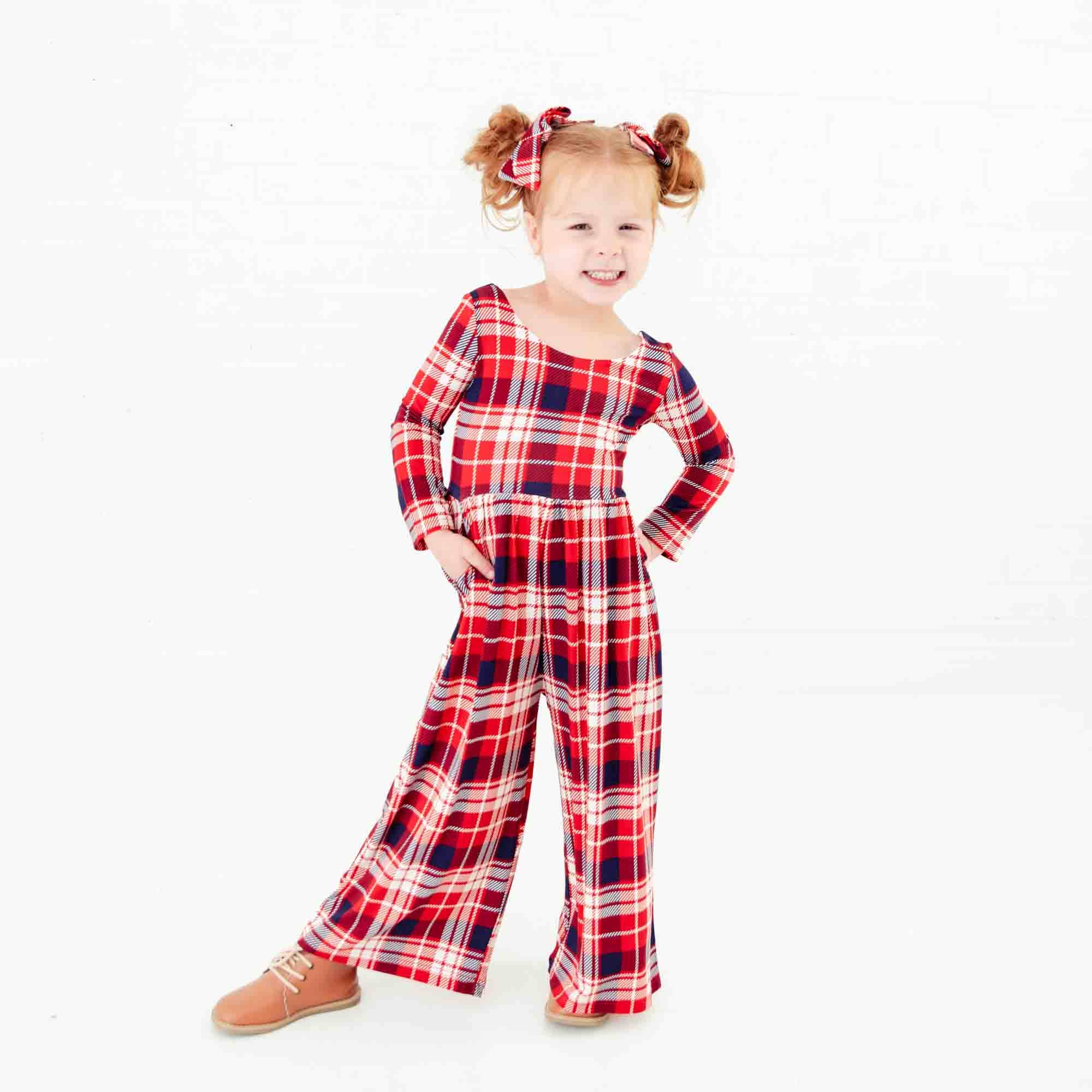 Candy cane wishes and mistletoe kisses! Holiday plaids are a must have!! Your search for the perfect bamboo daywear piece stops right here! Made with a lined bodice, wide legs and pockets, this adorable romper is sure to impress. * 95% Viscose from Bamboo, 5% Spandex * Our Fabric is not treated with harsh chemicals * Tagless! Our daywear is free from anything itchy that might irritate your little one's skin. * Leggy Romper is not intended for sleepwear * Stretchy, Stylish and Comfortable! * Headband not included. *New updated sizing from our previous leggy rompers! What is it about Dreamiere Bamboo? Our bamboo fabric stays about 3 degrees cooler than cotton on average. It’s great for kids with eczema. It's great for hot sleepers and sensitive skin. In warm, humid weather, our bamboo won't stick to your child’s skin. It's sure to keep your little one drier, cooler and more comfortable year-round!