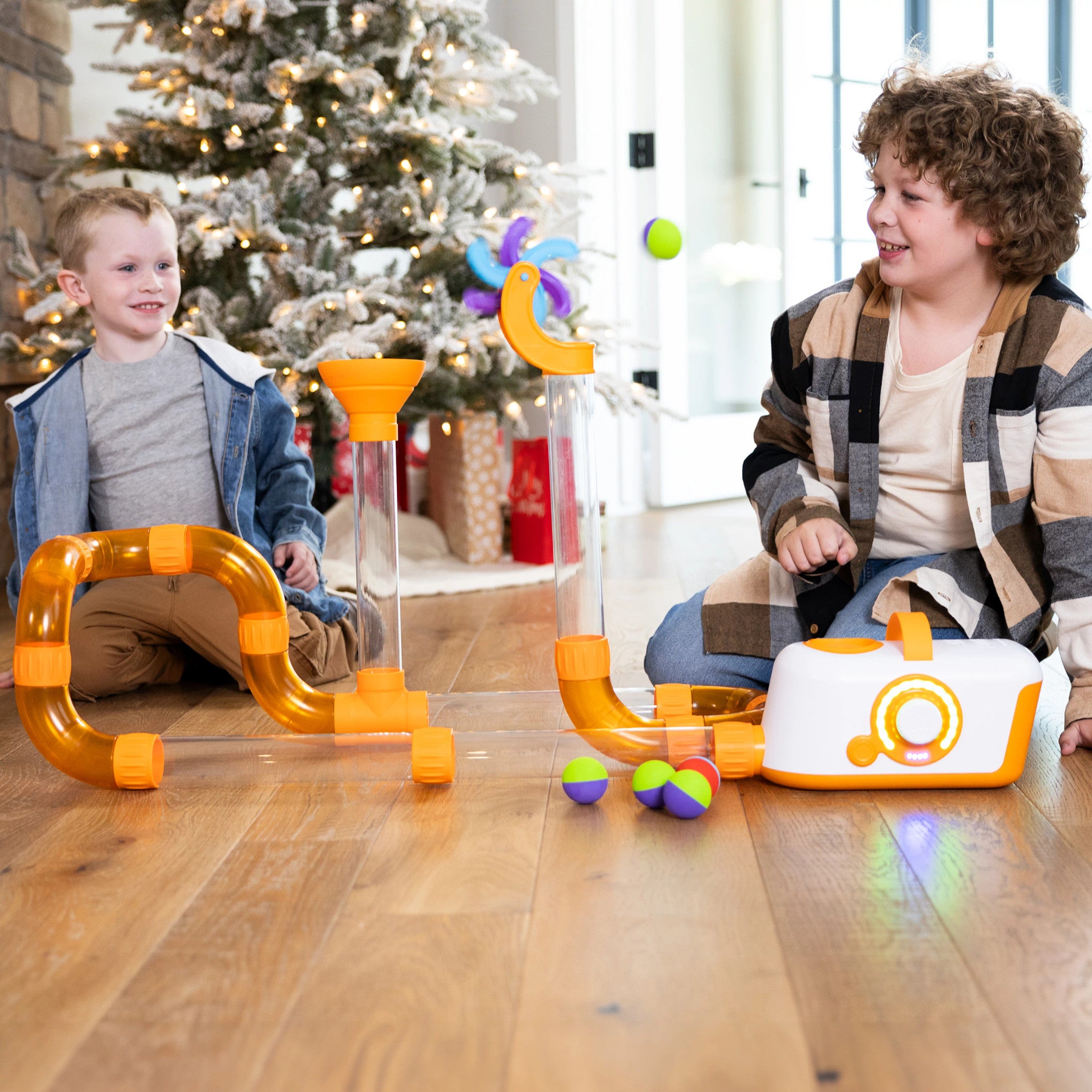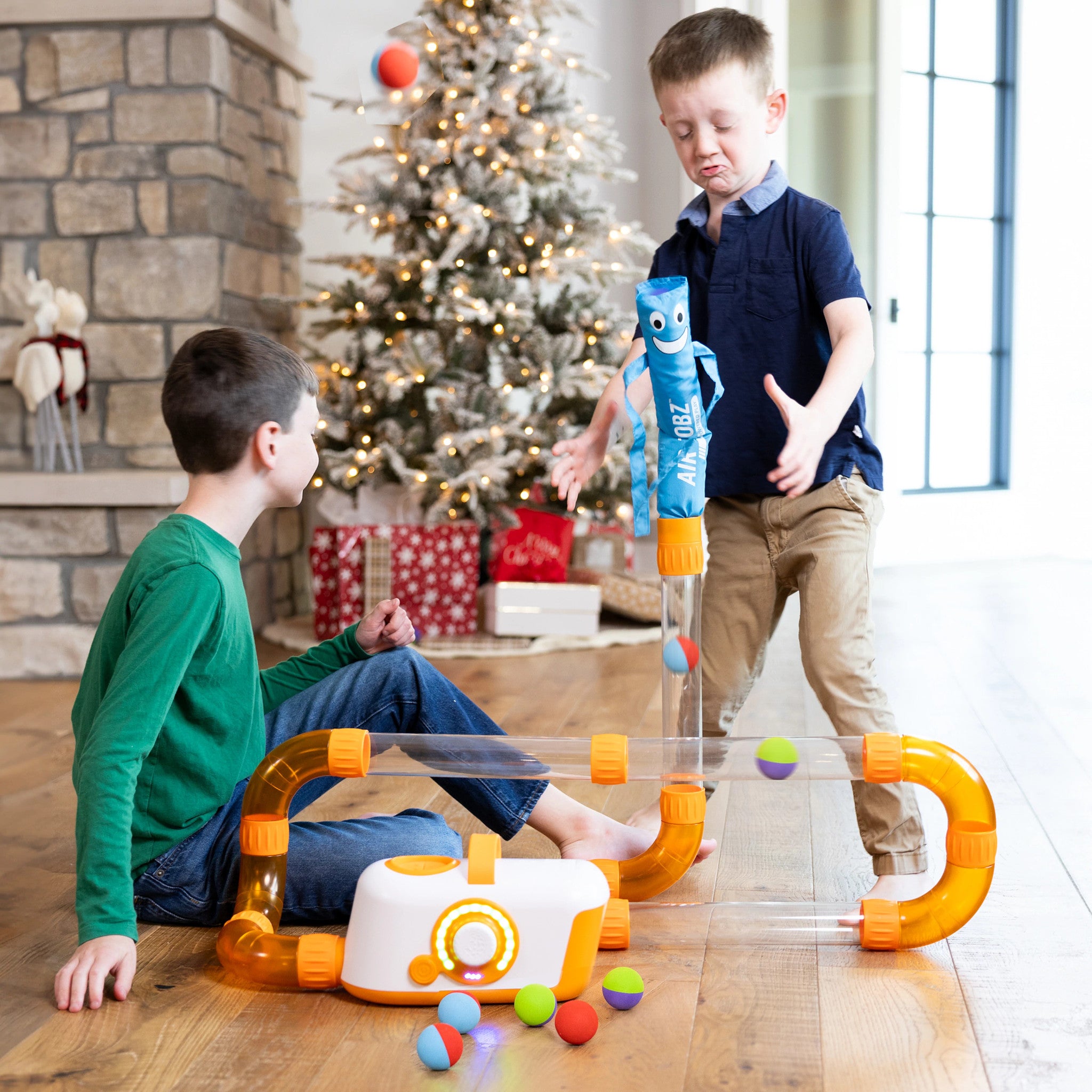 Windy dances wildly with the airflow while Whirly spins to kick the foam balls as they're launched from the tube. Both easily attach to the end of any tube. Plus, the set comes with 10 dual-colored balls for an extra twist of fascination! Play with air and let the giggles fly with the Air Toobz Whirlwind Accessory Pack.