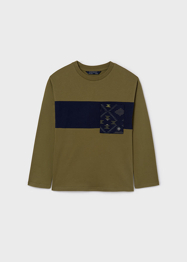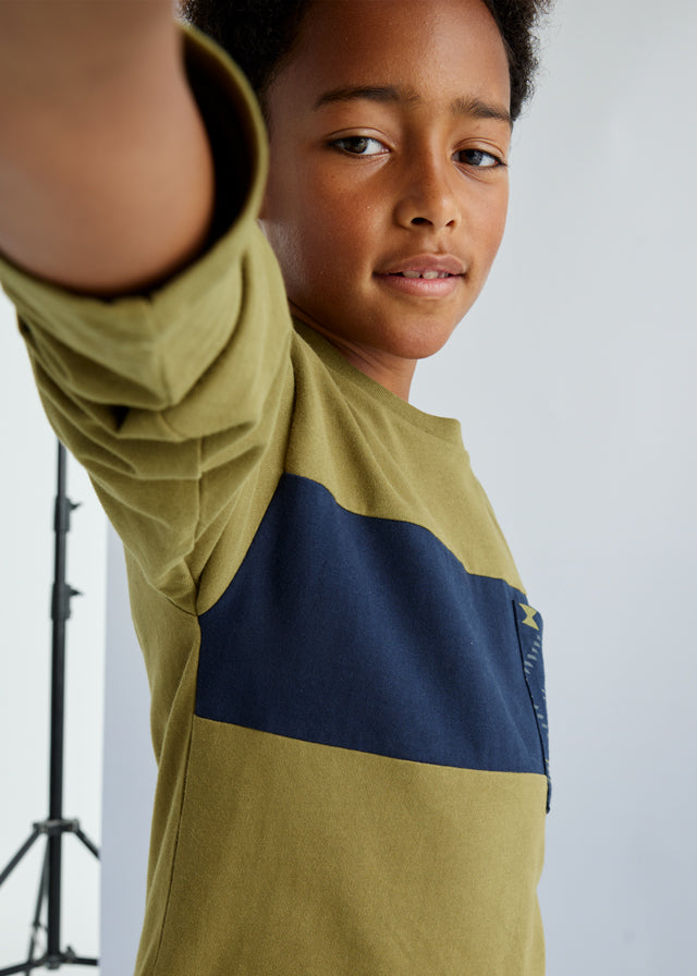 Unleash your tween's style with the Mayoral Contrast L/S T-Shirt in Khaki. This playful tee features a unique contrast design, perfect for the quirky cool kid. Its long sleeves add extra warmth for chilly days, making it both stylish and practical. A must-have for any tween boy's wardrobe!